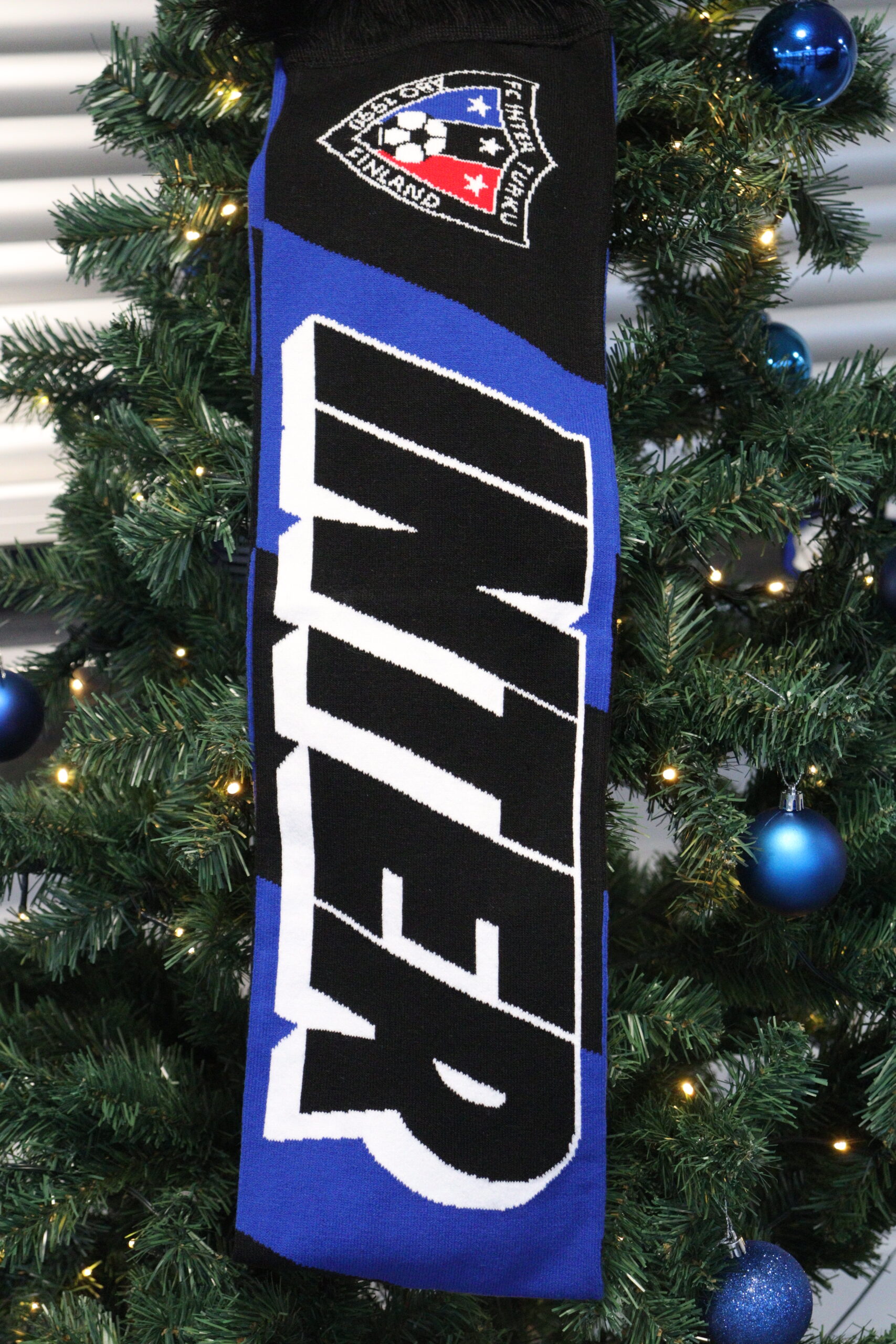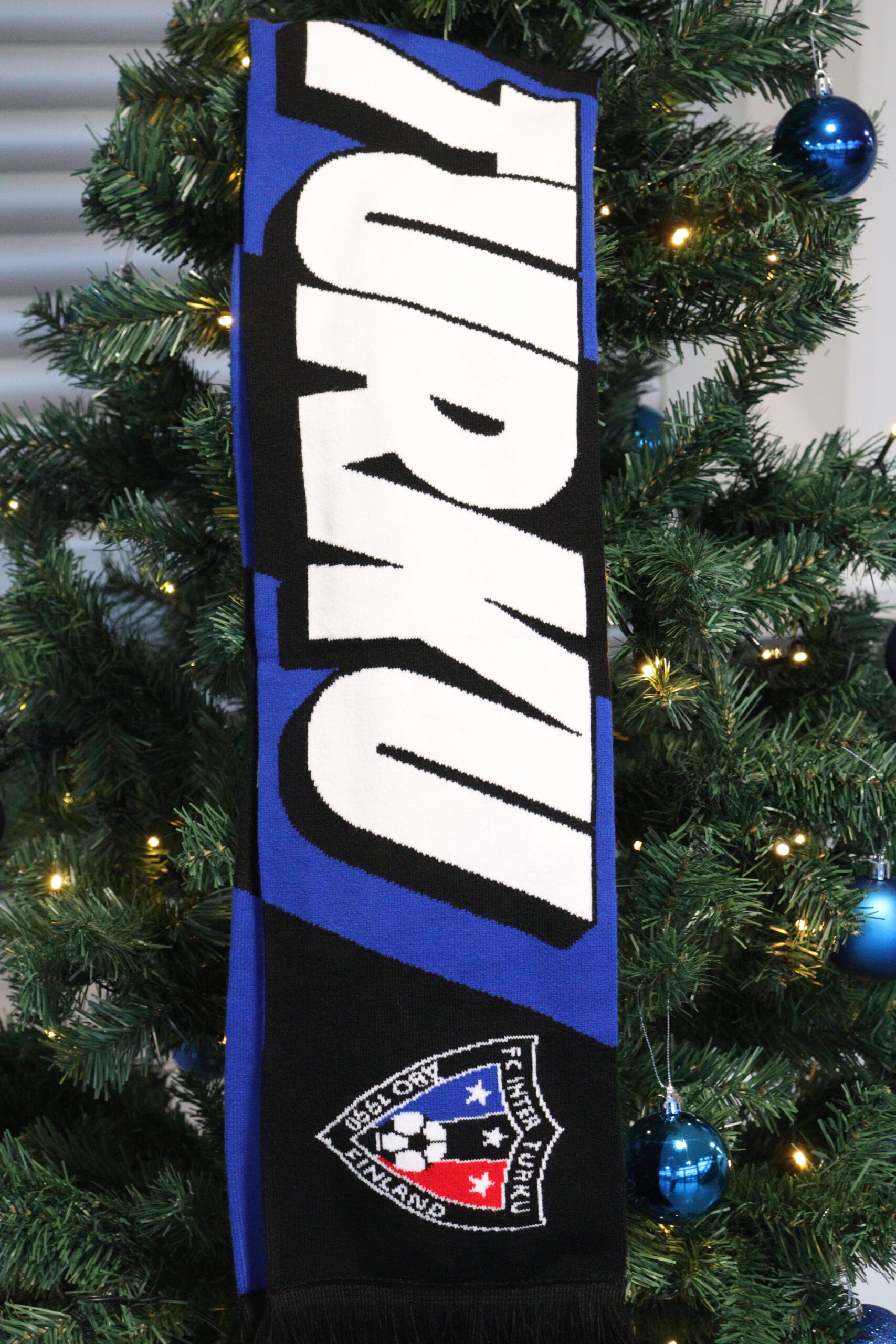 FC Inter -huivi kaudelle 2026, myynnissä 16.12.2025 alkaen! Hanki lämmin huivi ja ota vastaan liigakausi 2026 tyylillä! Huivissa kalteva teksti ”Inter Turku” (valkoinen fontti toisella puolella, musta toisella) sekä molemmissa päissä Interin logot molemmilla puolilla.